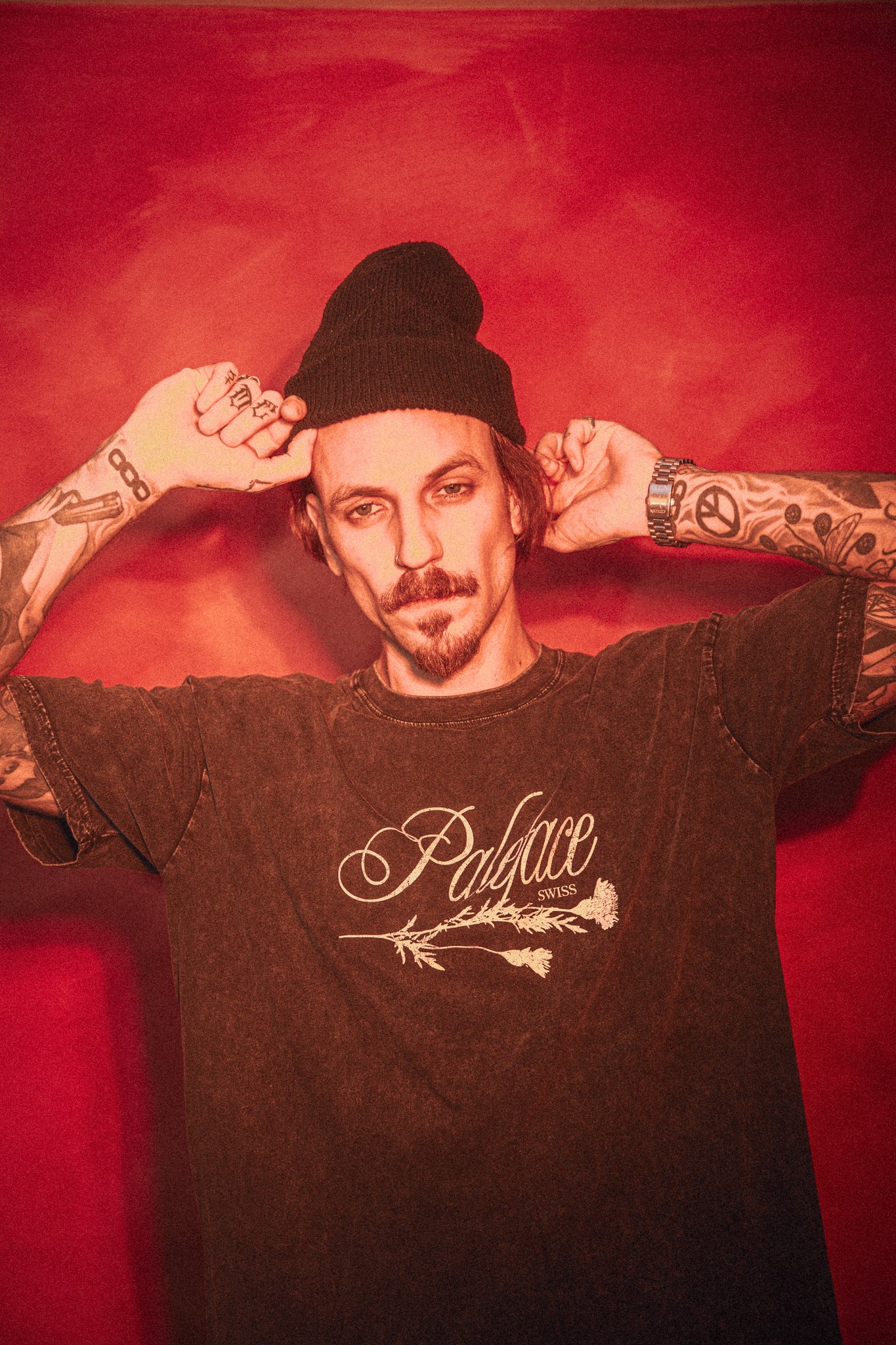 Crafted from high-quality cotton, this piece combines a vintage wash, soft handfeel, and our signature Paleface Swiss floral emblem on the chest — representing decay and beauty coexisting in perfect contrast.