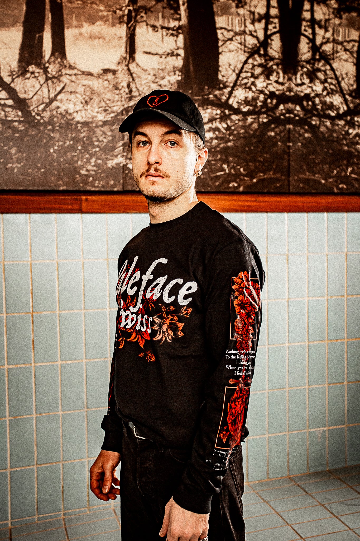 Bold artwork covers the back, soft floral elements wrap the sleeves, and the front keeps it clean with the Paleface Swiss signature. It’s dramatic enough for a show, moody enough for late‑night streets, and limited enough that it feels like a secret chapter of the Wilted era.